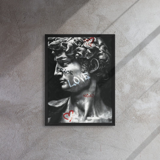 Love Unveiled: Graffiti-Infused Greek Statue Framed Wall Art Canvas