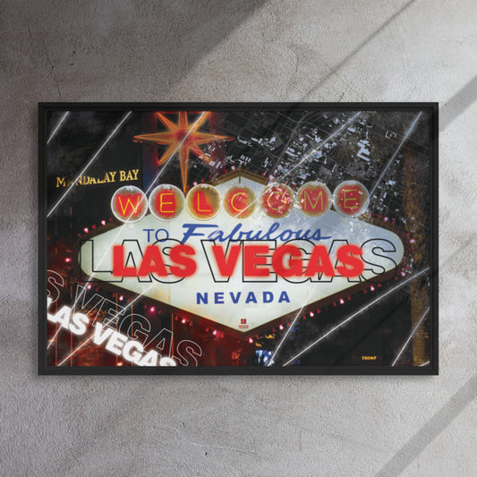 Framed Las Vegas Wall Art - Welcome to Las Vegas Sign Decor - Sin City Tourist Gift