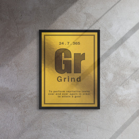"Grind" Gold Framed Motivational Wall Canvas Art Home Decor - Hard Work Inspiration Quote