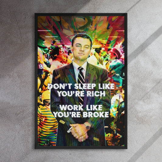 "Don't Sleep Like You're Rich Work Like You're Broke" - Vibrant Jordan Belfort Wall Art Canvas with Motivational Message and Durable Frame