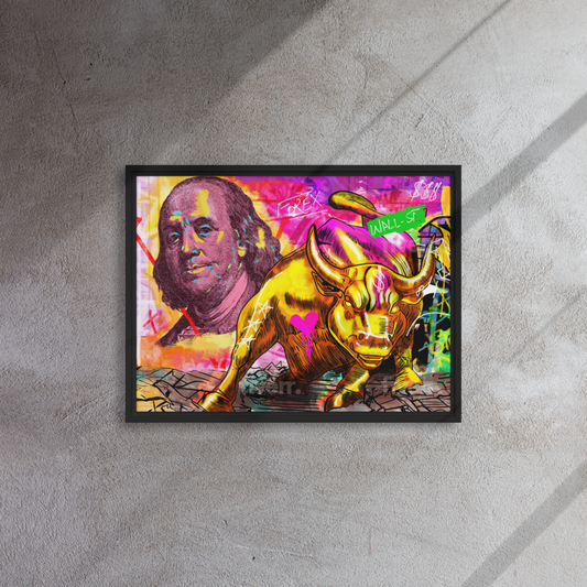 Wall Street's Finest: Majestic Framed Wall Art Canvas of the Bull's Power and Prosperity