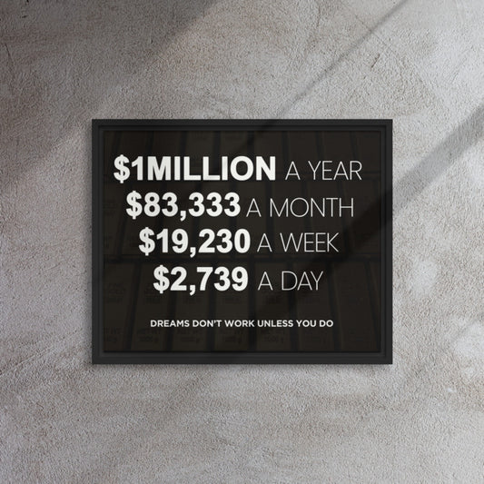 Dreams Don't Work Unless You Do - Motivational Canvas Wall Art Decor Framed Print