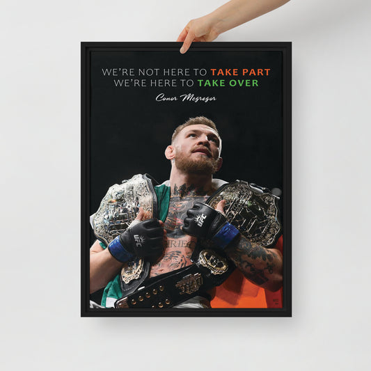 Motivational Conor McGregor Canvas Print - Wall Art with Inspirational Quote "We're Not Here to Take Part, We're Here to Take Over" - Framed and Ready to Hang - Great Gift Idea for MMA & UFC Fans