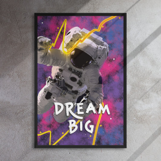 Motivational Framed Wall Canvas - Dream Big - Astronaut in Space
