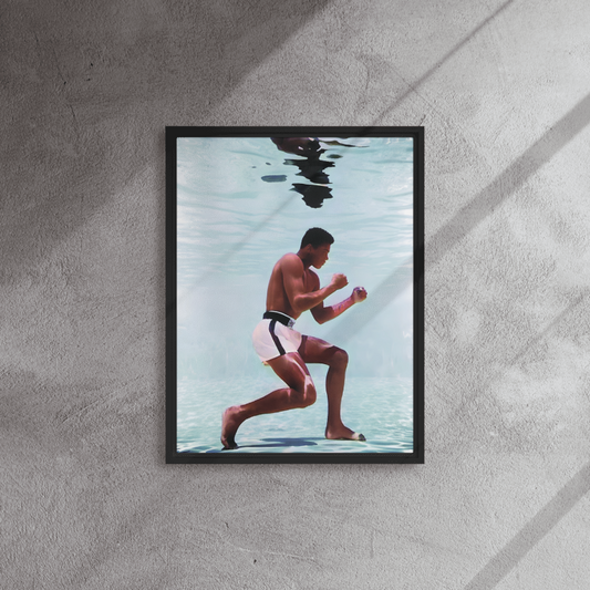 Underwater Poise: Muhammad Ali's Aquatic Grace - Framed Canvas Art