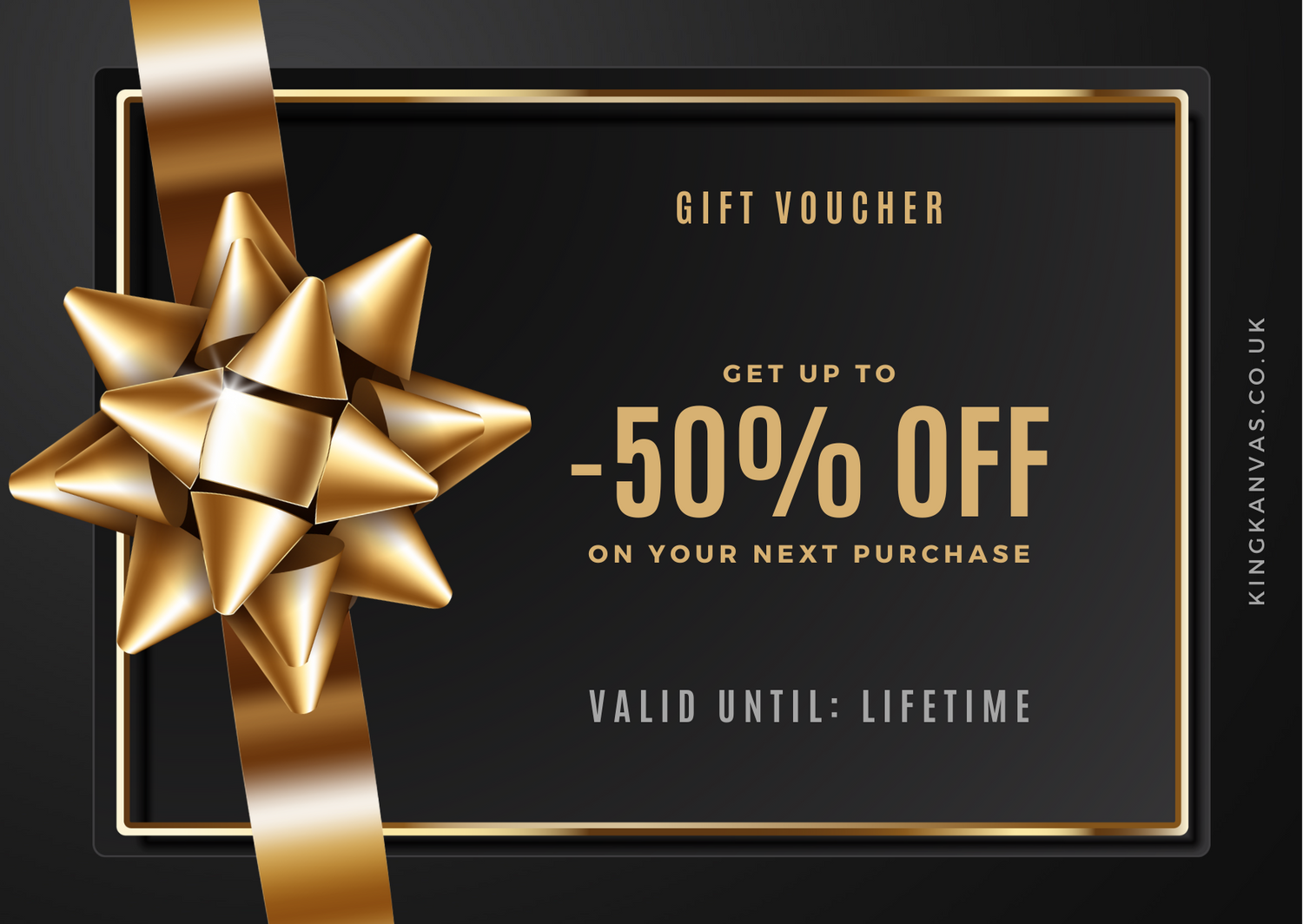 Treat your loved ones to the perfect gift with our unique KingKanvas gift cards. Give the gift of creativity and let them choose their own custom artwork design - the possibilities are endless!